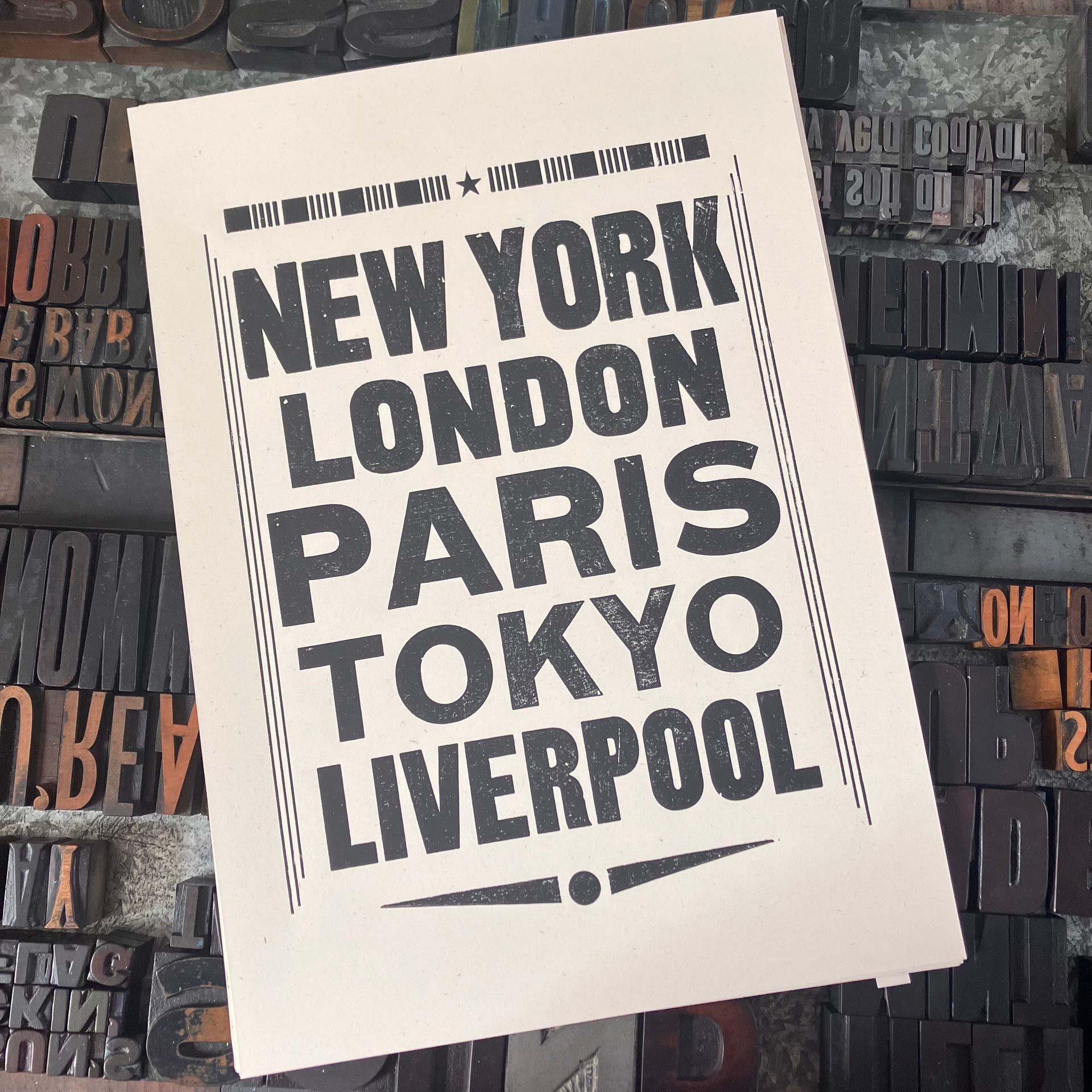 Letterpress is a traditional form of relief printing involving individual, moveable letters made from wood and metal. To create a print, these letters are assembled by hand, locked into a frame called a chase, inked with a roller and pressed against a sheet of paper, creating an impression.